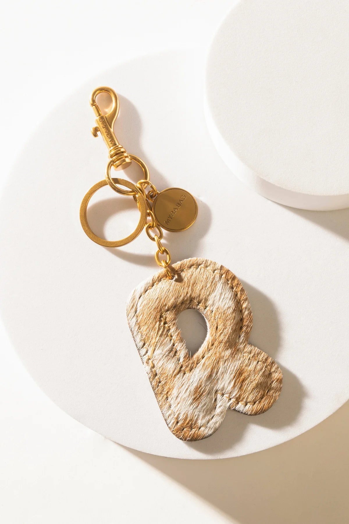 Brown Hair-on Leather Initial Bag Charm
