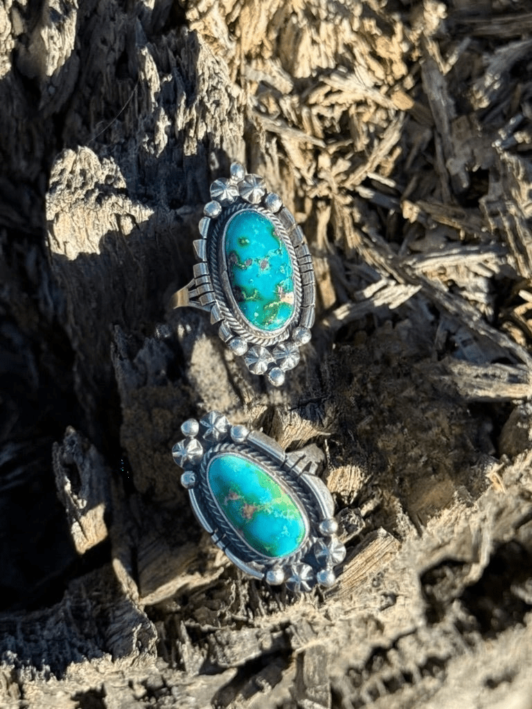 Feast your eyes on this stunning Large Sonoran Turquoise Teardrop Ring, a bold statement piece dripping with Western allure and timeless authenticity. Featuring an authentic turquoise stone shaped into a striking teardrop, set in sleek sterling silver, this ring brings vibrant color and wild western charm to any hand.