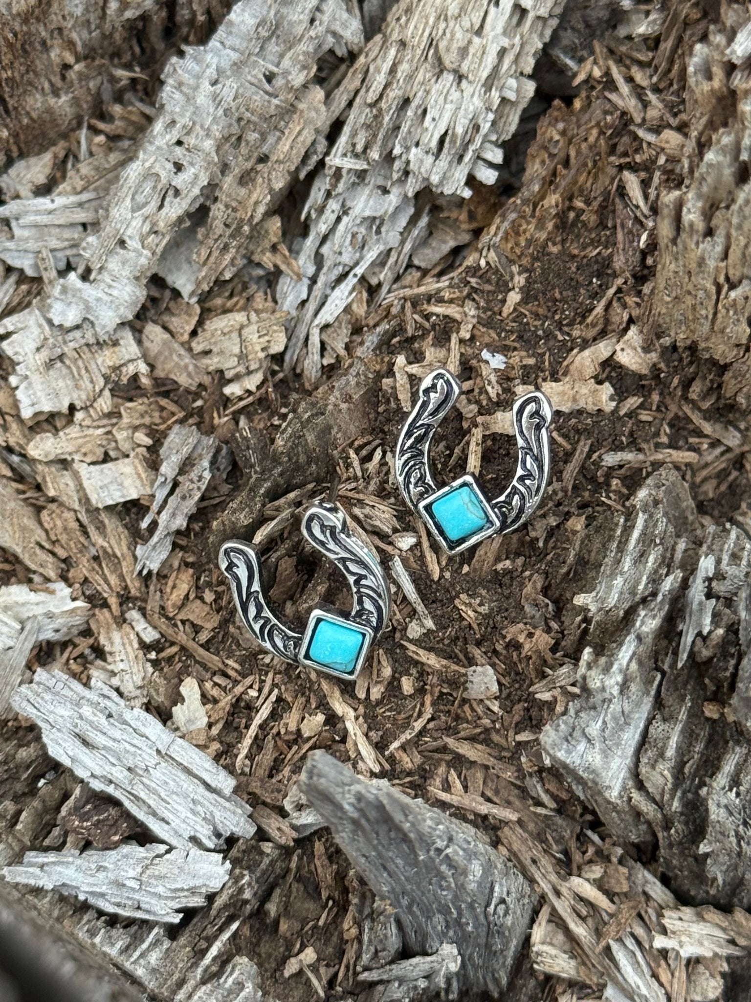 Snag some serious Western swagger with these Mini Horseshoe Turquoise Earrings. They're tiny, they're tough, and they've got that perfect pop! Featuring a vibrant turquoise set in a beautifully detailed, silver toned horseshoe design, these studs are the perfect dose of dusty-road glamour. Modern style meets frontier grit in this fun little accessory.