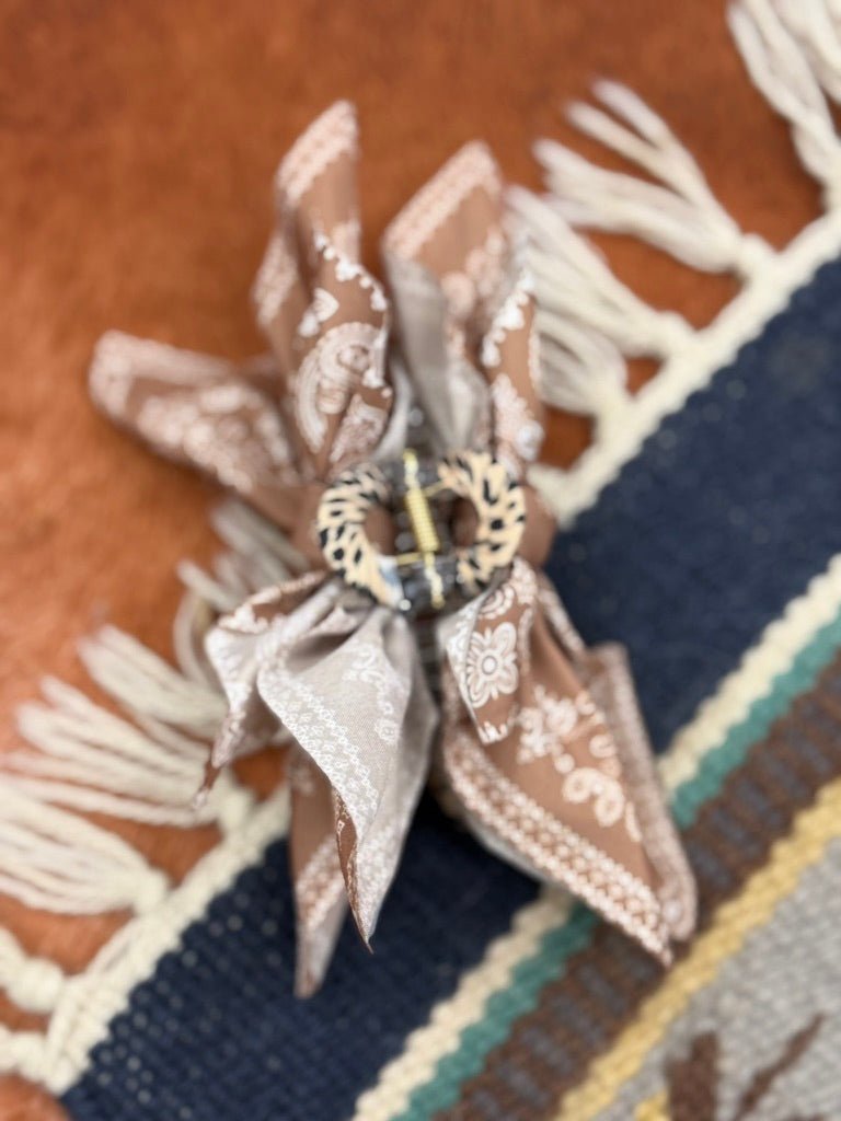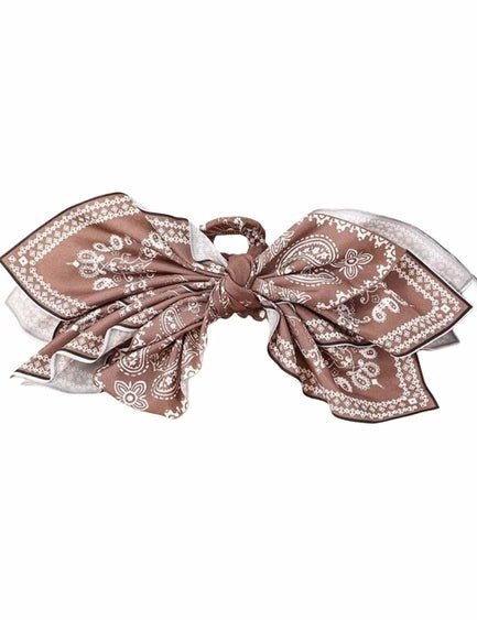 Paisley Bow Claw Hair Clip - Brown
