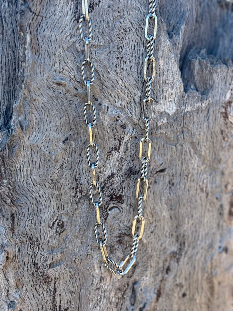 Add a touch of contemporary edge to your look with this striking White Gold Twisted Rope Paperclip Chain Necklace. It features elongated, oval links crafted in 18K white gold plated chain, each detail twisted to create a unique, rope-like texture along the center. TPerfect for layering with longer pieces or wearing solo as a sophisticated statement. This necklace offers a modern twist on the classic paperclip chain, giving you a versatile accessory that transitions effortlessly from day to night.