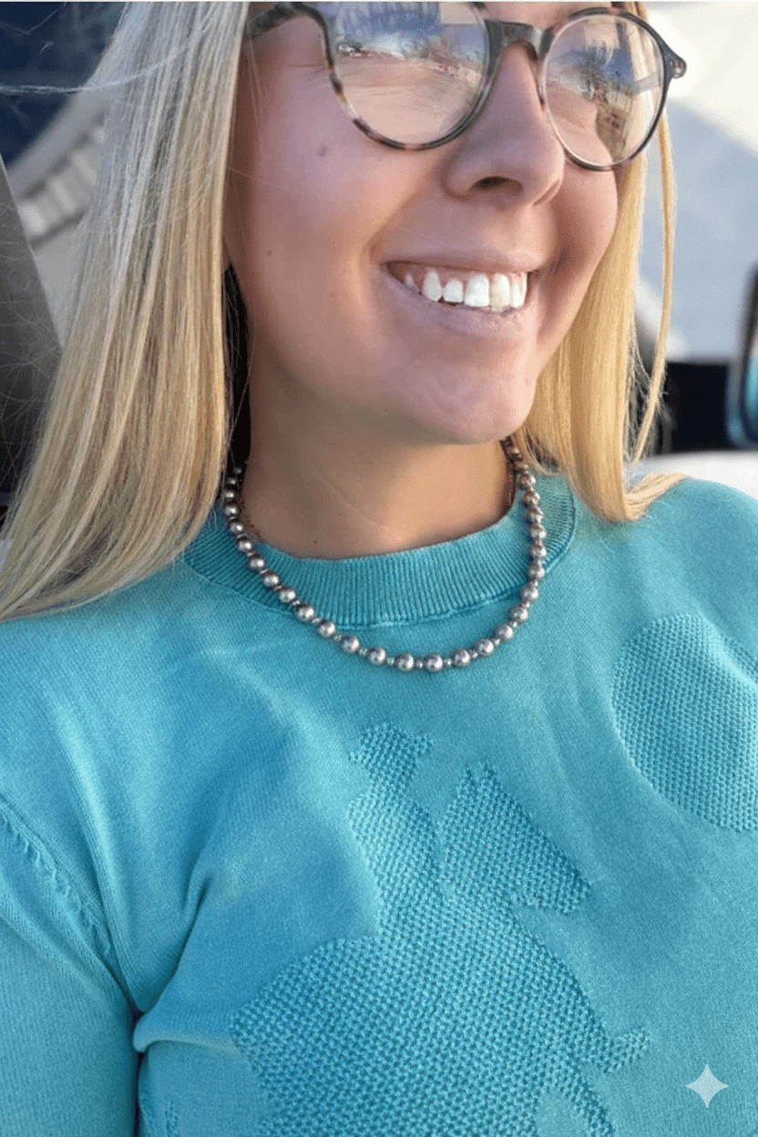 Add a little fun to your everyday glow with our Western Pearl Silver Beaded Necklace. Featuring high-shine metallic beads that catch the light from every angle, this piece is the ultimate bridge between rugged desert vibes and city-chic elegance. Saddle up—your jewelry box just found its new favorite staple!