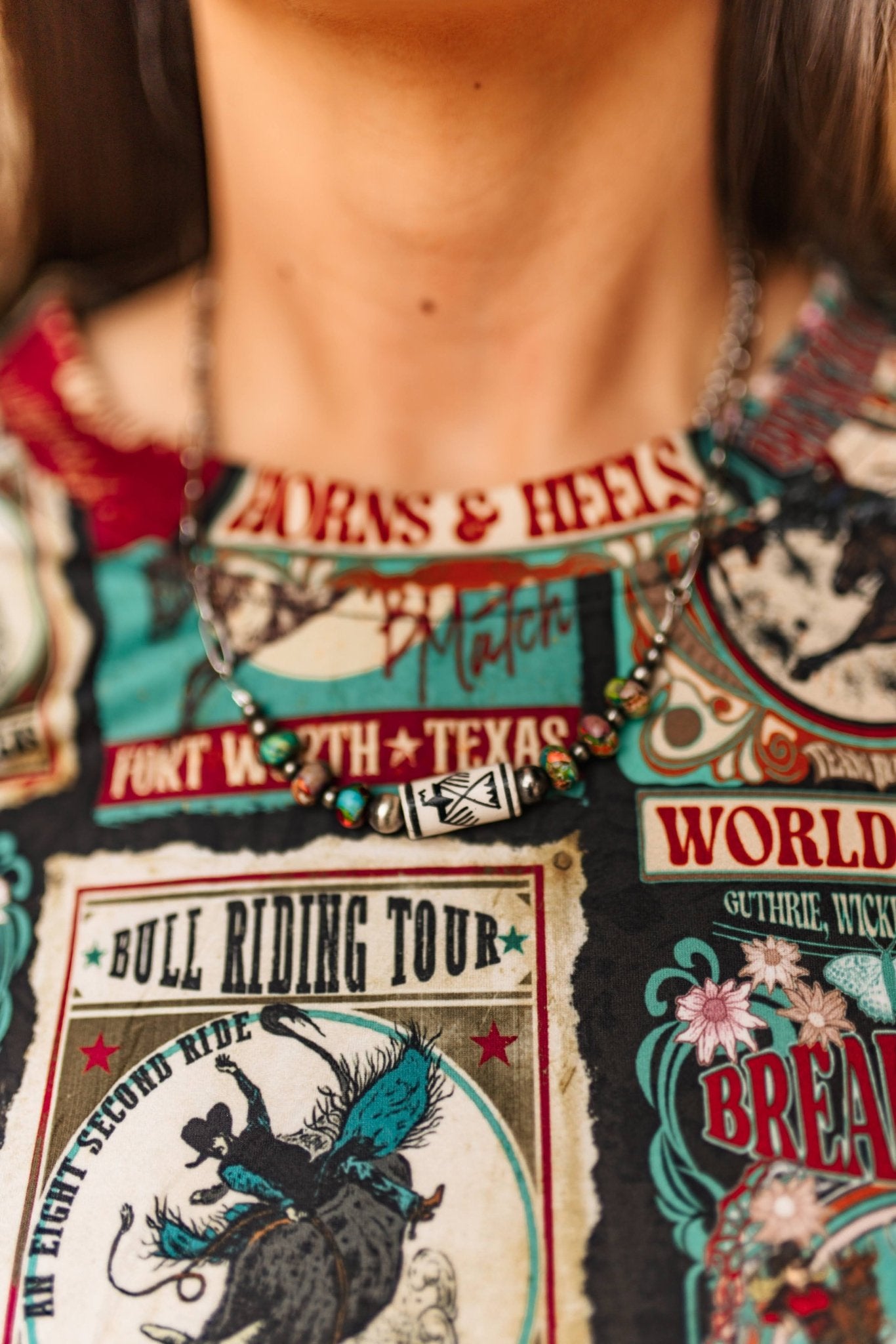 Infuse your style with vibrant heritage and modern edge with this Multicolor Aztec Paperclip Chain Necklace. Featuring bold multicolored beads along with Aztec-patterned accent and silver pearls in a sleek paperclip-style link chain. The pops of color draw the eye, while the elongated links lend texture and elegance.