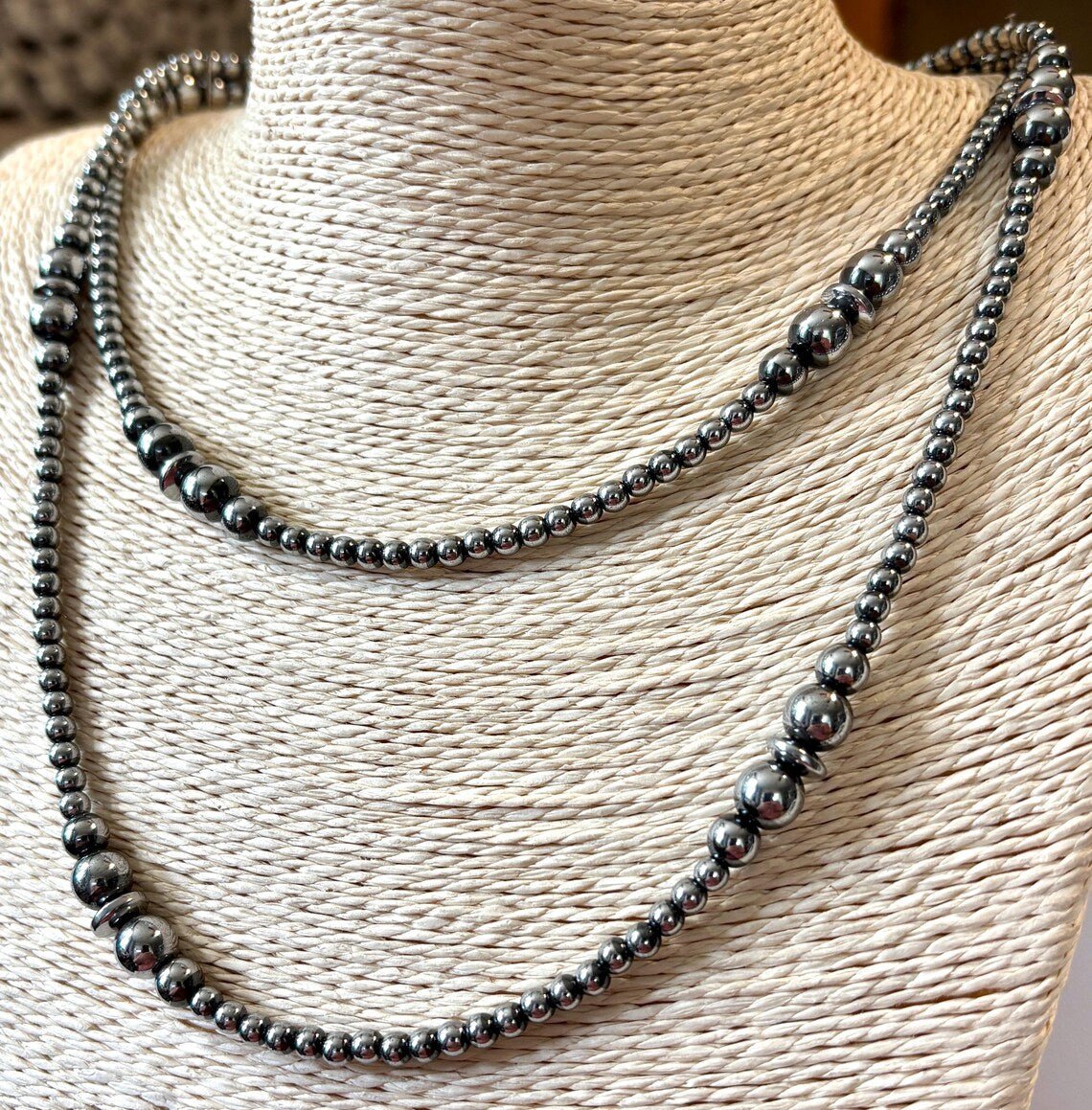 Step into your power with a look that’s as bold as it is balanced! Our Graduated Hematite Pearls Layered Necklace isn't just an accessory; it’s a total mood. Featuring sleek, metallic-sheen beads that transition from dainty to dramatic, this layered stunner brings that cool girl industrial edge to any outfit. These hematite-hued pearls offer a weighted, high-shine finish that says you’ve got it all together—even if you're just headed for coffee.