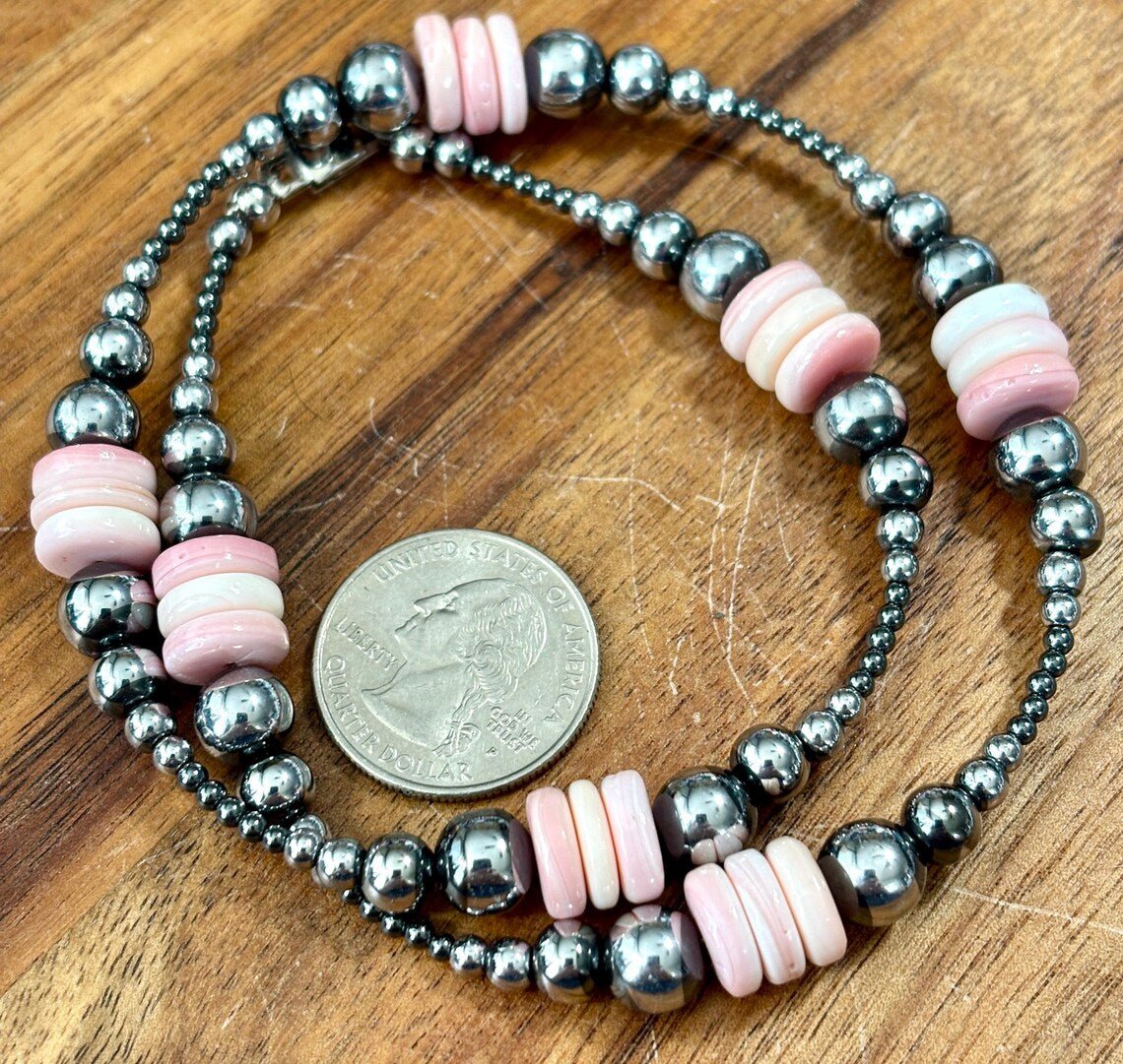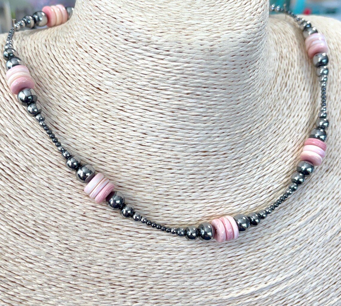 Embrace your inner sea deity with the Queen Conch Hematite Beaded Necklace. This stunning piece perfectly balances the soft, dreamy blush of genuine Queen Conch shell discs with the bold, metallic edge of polished Hematite beads. This necklace is the ultimate statement, it’s durable and ready to turn heads.