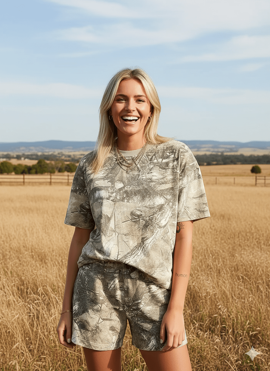 Elevate your casual game with this Oversized Retro Camo Tee and Shorts Set — where bold style meets all-day comfort. The relaxed-cut tee with a vintage camo print and the matching shorts blend effortlessly, perfect for lounging, streetwear looks, or just letting your style do the talking.