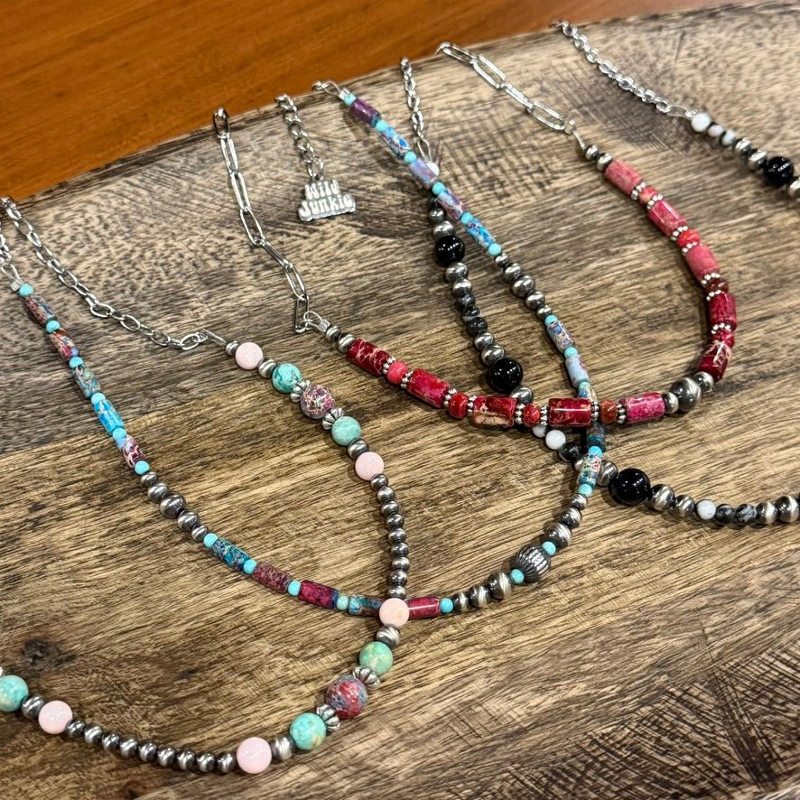 Add a splash of desert sunset to your jewelry box! Our Canyon Rose Paperclip Chain Necklace perfectly blends rugged Southwestern vibes with modern, on-trend style. Featuring stunning, earth-toned pink jasper stones and sleek sterling silver accents, it’s the perfect mix of desert wanderer and downtown chic.