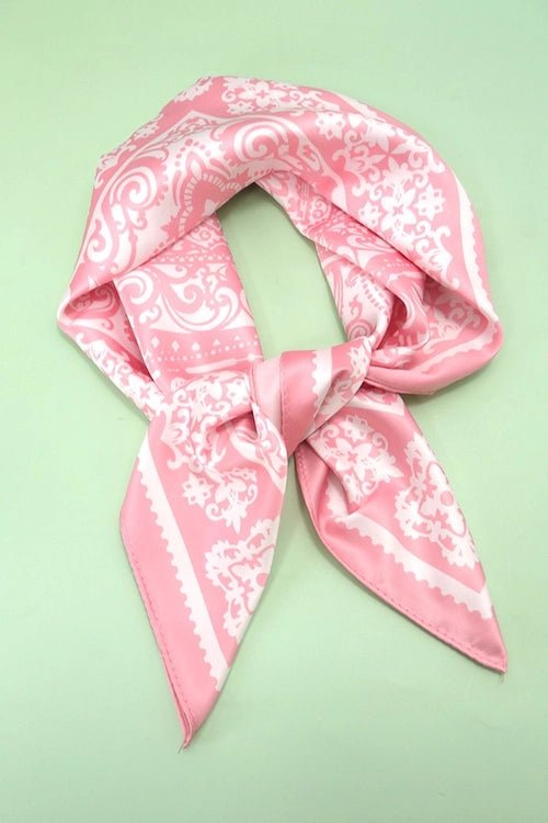 Soft, silky, and seriously chic—this Blush Pink Paisley Bandana is the ultimate it-girl accessory. Whether you’re tying it around your ponytail for a vintage vibe, knotting it onto your favorite tote, or rocking it as a trendy neck scarf, its intricate white filigree pattern adds just the right amount of flare to any fit. It’s smooth to the touch and even smoother on your style game!