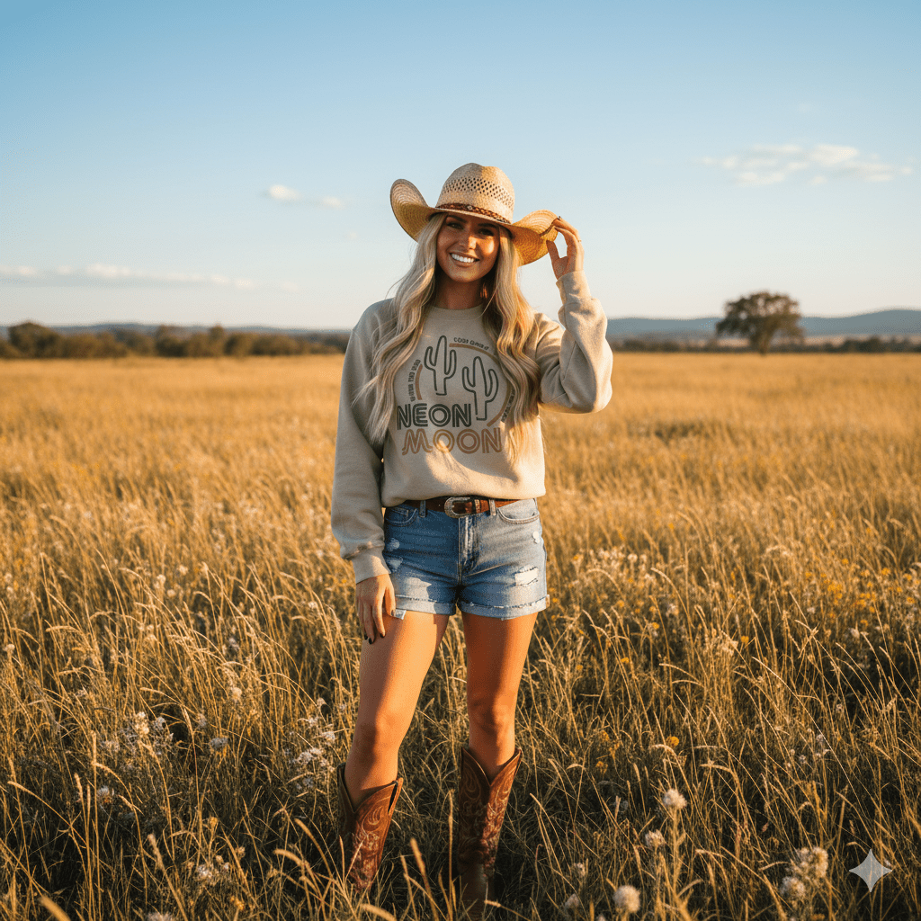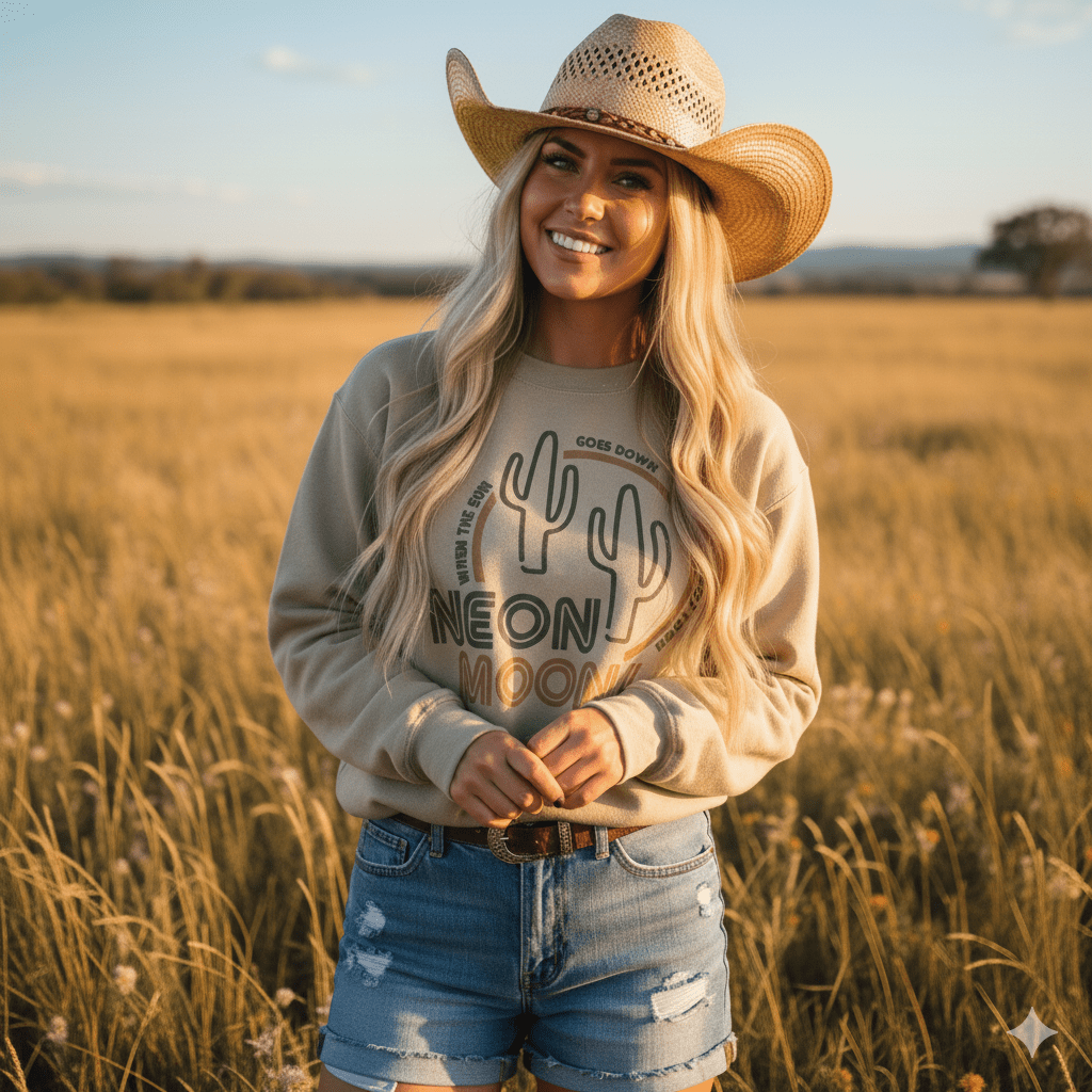 Slip into the wild side of desert nightlife with this Neon Moon Cactus Sweatshirt— where retro neon vibes meet rugged cactus energy and cowboy rebellion. The fit’s roomy but tailored enough to show you’ve got style. Whether you’re channeling desert nights, roadside diners, or just craving some neon sass, this graphic sweatshirt is your ticket to desert-drenched attitude with a wink.